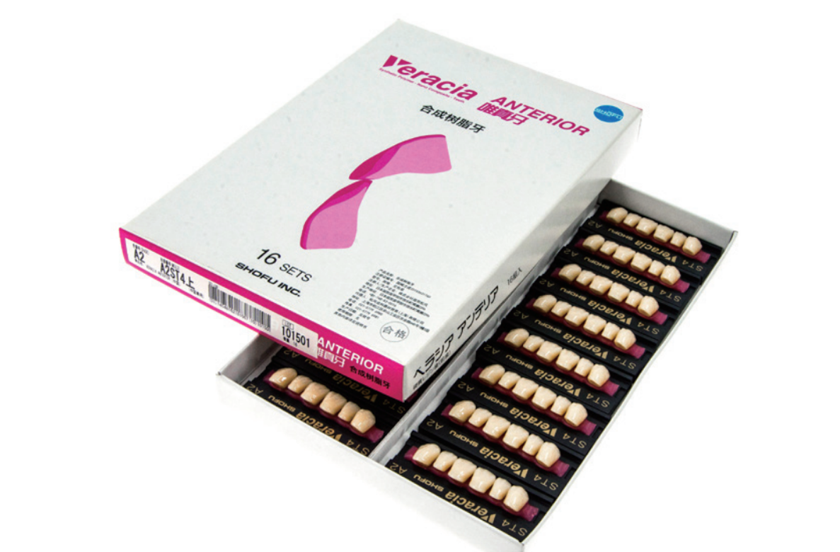 牙釉质层/ 牙本质部分:采用含有混合状微填料的MF-H 新材料,将耐磨性,抗染色性,粘结性和机械性完美融合的硬质树脂牙